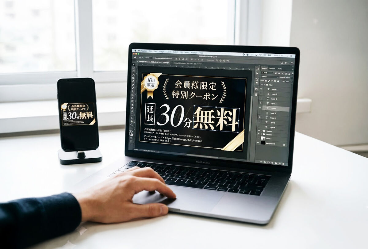 「文字が小さすぎるかも?」「ボタンが押しにくい?」といったことも、Photoshopで修正すれば、スマホのプレビューもリアルタイムで反映されます。