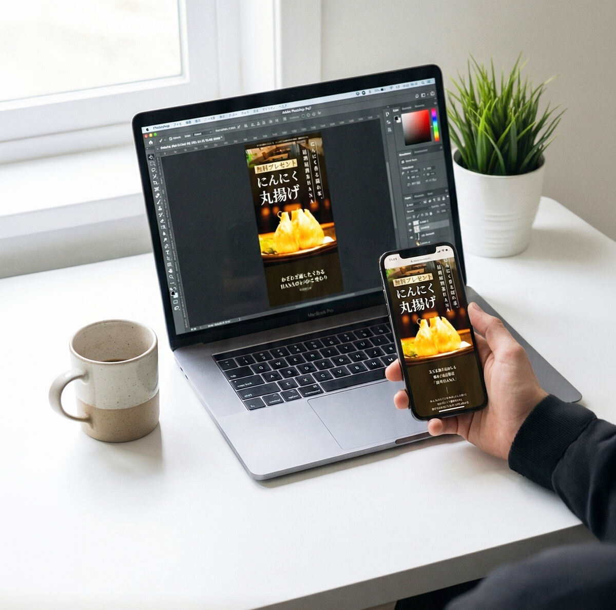 QRコードを読み取るだけで、Photoshopのデザインをスマホで確認できます。